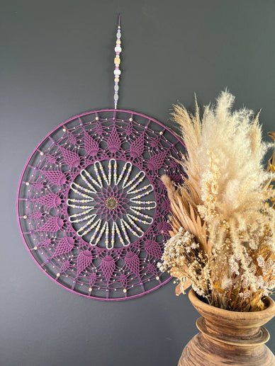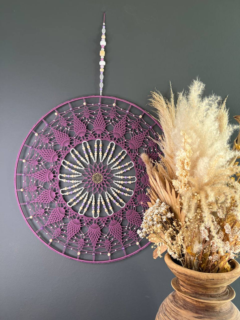Deze unieke handgemaakte mandala kan gebruikt worden om jouw interieur op te leuken, of om ingezet te worden als dromenvanger.