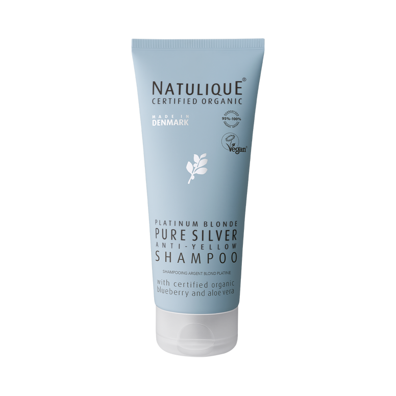 Vegan Gecertificeerde Zilver shampoo met heilzame ingrediënten. Gecertificeerde biologische bosbessen, mango’s en aloë vera voeden en beschermen, terwijl ze gele tinten neutraliseren.