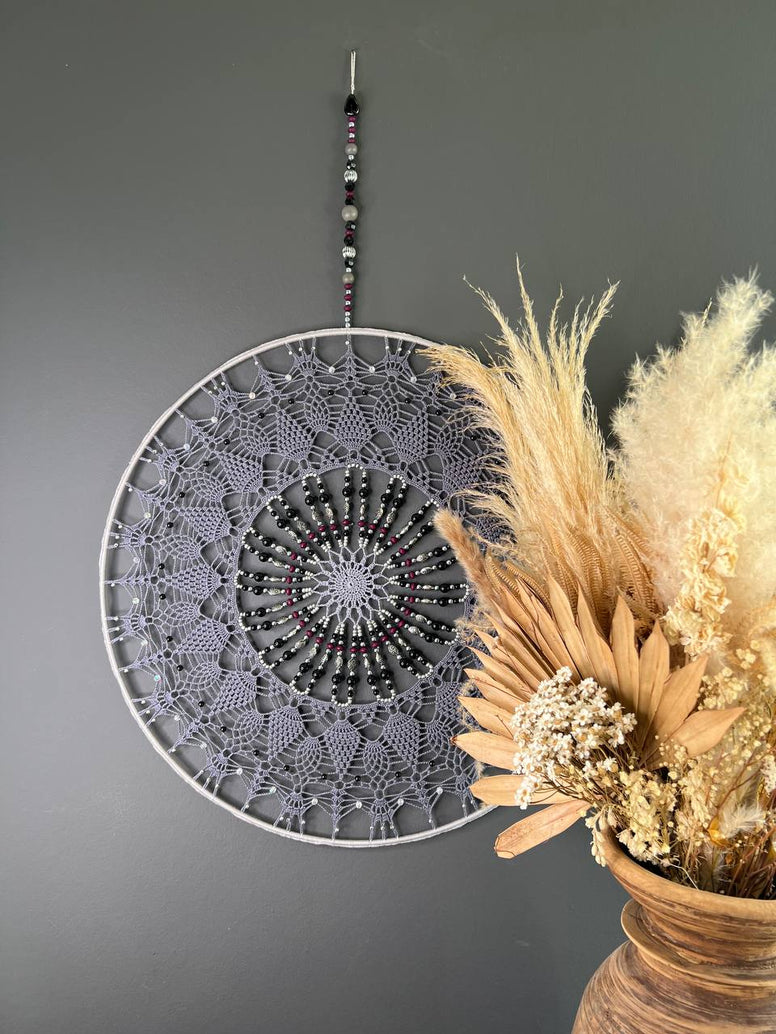 Deze unieke handgemaakte mandala kan gebruikt worden om jouw interieur op te leuken, of om ingezet te worden als dromenvanger.